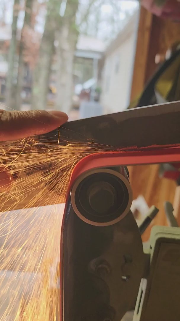 Ceramic Shredder belts come in an orange/reddish color, typical of ceramic grains. The grain structure of these belts provides continuous renewal of the most consistent and uniform cutting edges. The nature of ceramic grain allows for faster cutting and cooler stock removal. They are adhered to a Y-Weight backing. A backing material's thickness (related to its flexibility) is categorized by the alphabet. Backings closer or rated as 'A' are substantially more flexible than the stiffest 'Y' weight backing you'll find on our site. Backings with an 'A', 'B', 'C', 'D', 'E', or 'F' backing are all considered paper backings. 'E' and 'F' weight backings are typically used to make belts as they are the most durable paper backings available (typically found in the wood industry) though still much less durable/thick than the full or partial synthetic backings like an 'X' or 'Y' weight. Typically various 'X' and 'Y' weight backings are used in metal working as the standard. Y weights are very sturdy and typically full synthetic poly materials versus some 'X' weights often being a cotton-poly blend material to allow for greater flexibility. J Flex refers to an even greater flexible backing material that is often used without a contact wheel and some slack in the belt so it can softly contour rounder shapes (e.g. a wooden handle).